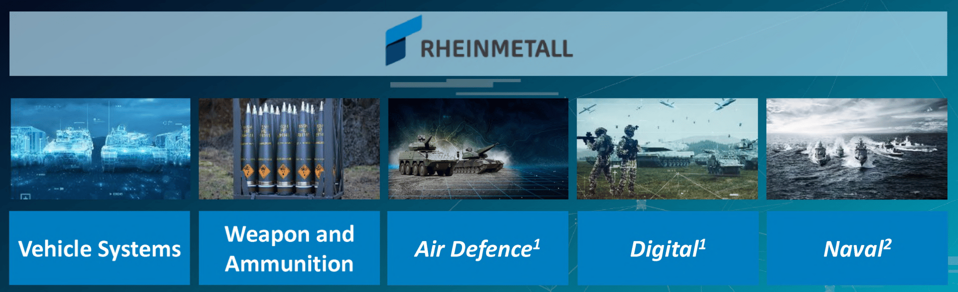Weapon and Ammunition (Armas y Munición) - 29% de las ventas (2.783 millones €): Producen desde la munición para los tanques hasta los cañones mismos. Es un negocio muy recurrente: los vehículos se compran una vez, pero la munición se gasta y se repone constantemente (especialmente ahora).