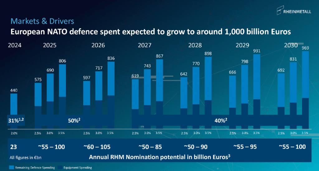¿Por qué ahora? La compañía llega con un backlog récord y contratos marco —incluido uno de 8.500 MM€ en munición de 155 mm—, la Join Venture 50:50 con Leonardo en Italia y la inauguración del complejo de Unterlüß (agosto de 2025) que escala la oferta de proyectiles.