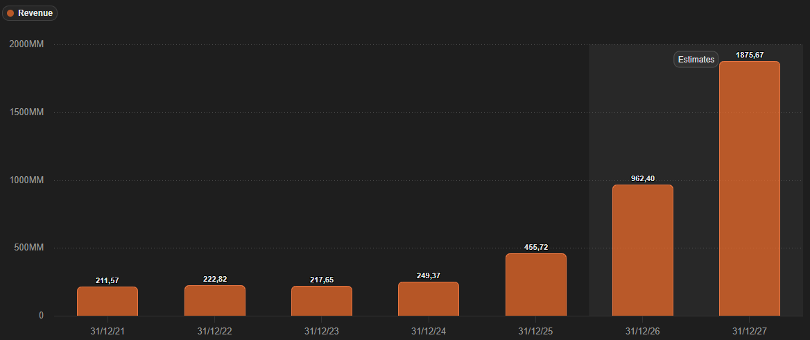 Considerando que el valor de mercado de las acciones no afiliadas se fijó recientemente en $1.491.234.829 (a un precio de $25,69 por acción), la empresa está cotizando a un Price-to-Sales (P/S) aproximado de 3,2x (6,83x a marzo/26). Para un proveedor que es el “peaje físico” de la Inteligencia Artificial y que acaba de disparar sus márgenes brutos al 30,0%, este múltiplo es una disonancia escandalosa.